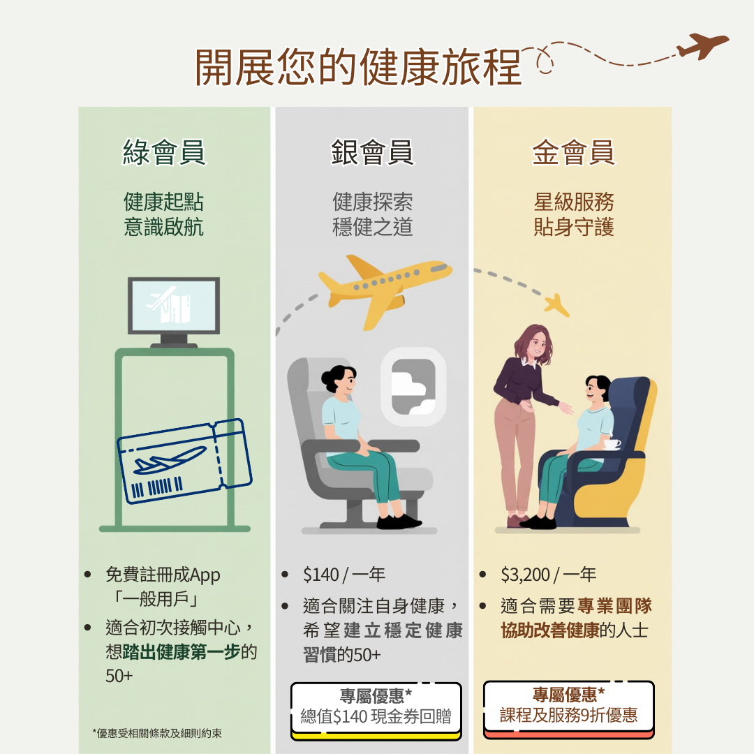 另外,為鼓勵50+繼續關注自己的健康,「賽馬會流金匯」於新一年度將推出全新會籍級別,並提供相應優惠,詳情請參閱《2024-2025年度會籍優惠》。