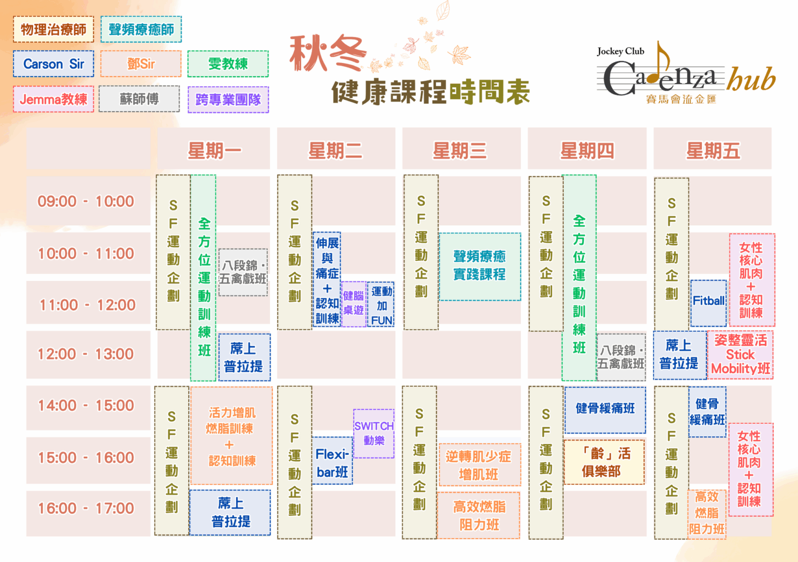 2025秋冬健康課程 時間表